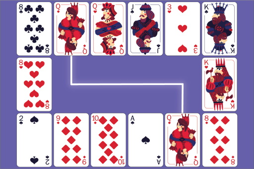 12 Levels await us where we have to match card pairs to remove them from the grid. With each match we get more time added. Сards must be connected by no more than 3 lines.select idendical cards to remove