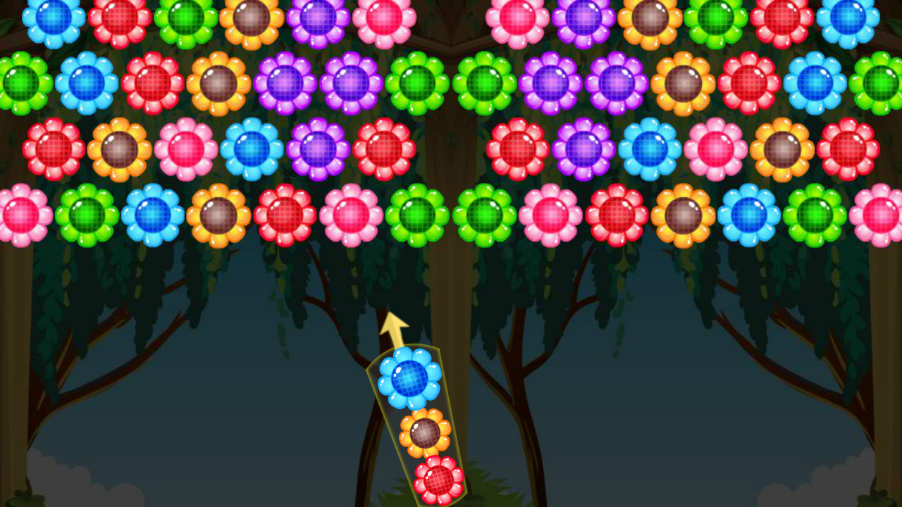 Click or touch where you want to shoot the flower. Remove flowers to create a cluster of 3 or more flowers of the same color. The game ends if you let any flower get past the line at the bottom of the screen. Use coins you earn in the game to purchase the helpful power-ups.