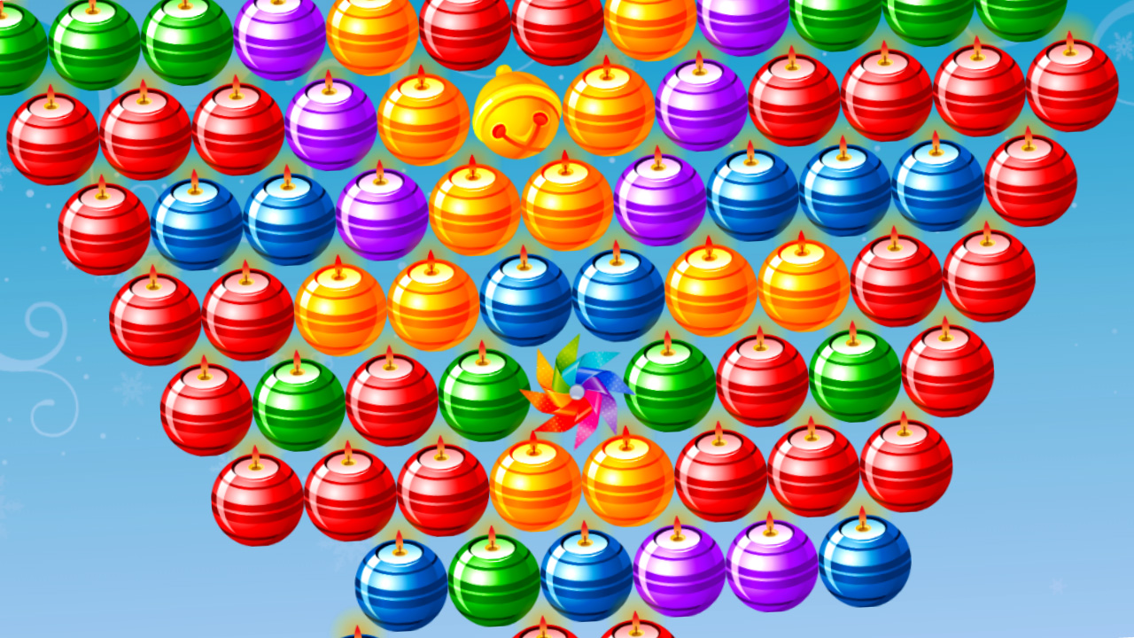 Winter Bubbles is a Classical bubble shooter game with winter theme. Aim and release the candle in order to combine it with other similar candles. Your goal is to collect the Golden Bell with the allowed time. Don’t let the candles reach the border. There are several power-ups which can be activated by shooting candle on them.